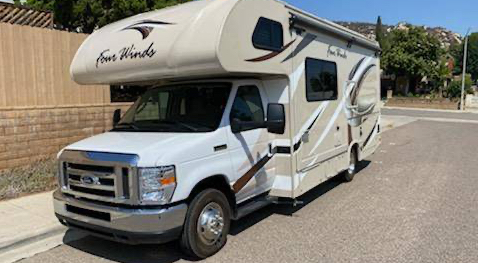 Four Winds 24F Luxury super-slide motor coach is approximately 24 feet in length with a Ford v8 engine, Workhorse chassis, power mirrors with heat, power windows and locks, 3.6 KW generator, power patio awning, slide-out room topper, pass-thru storage, tank heater, 5K lb. hitch, back up camera, cab over bunk, ducted roof A/C and LCD TV with CD/DVD player and surround sound system.